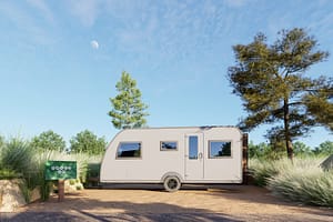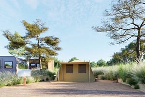 Nieuw! (zomer 2025)Voor (dak)tent, vouwwagen caravan of camper, max. 8 m lang, max. 5 ton Privésanitair (wc, douche, lavabo)Inclusief elektriciteitsaansluiting, CEE stekker, 16...