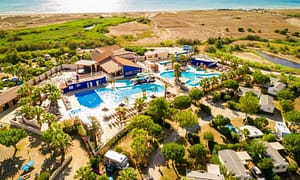 Camping bij , Languedoc-Roussillon in Frankrijk. Aquapark van 1300m2 met glijbanen. Op 450 meter van het strand. Overzichtelijke camping met animatie voor jong en oud. Bezoek...