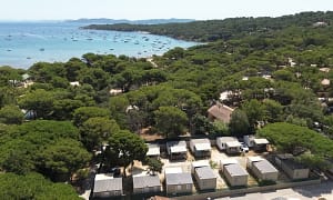 Camping bij , Côte d'Azur in Frankrijk. Direct aan zee. Kids- en tienerclub. Sporttoernooien, yoga of aquaqym. Uitzicht op de Porquerolles eilanden.
