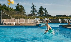 Camping bij , Bretagne in Frankrijk. Verwarmd, overdekbaar zwembad met glijbanen. Toffe speel- en klimtoestellen. Een echte familiecamping, direct aan zee. Strandwandeling of een...
