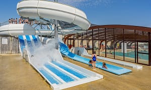 Camping bij , Languedoc-Roussillon in Frankrijk. Aquapark met glijbaan en kinderbad. Maar 800 meter van zee. Fitnessen en dan relaxen in de uitgebreide wellness. Wijntour op...
