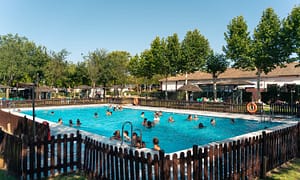 Camping bij , Costa Brava in Spanje. Zwembad met groene ligweides en ligbedjes. Accommodaties: incl. handdoeken, opgemaakte bedden, eindschoonmaak. Tennis, volleybal, fitness,...