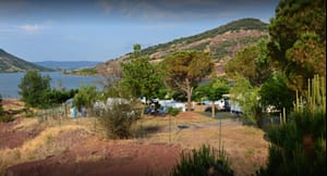 Vanaf deze eenvoudige camping loop je zo het Lac du Salagou in om te zwemmen/spelen. Het kiezelstrand grenst direct aan het terrein, in het meer is het wel raadzaam waterschoenen...
