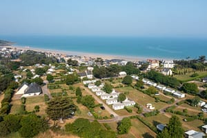 Camping met hoogteverschillen en veel gezichten; van luxe stacaravans tot eenvoudige staanplaatsen op gras omgeven door heggen en hoge loofbomen. Het zandstrand met keien aan de...