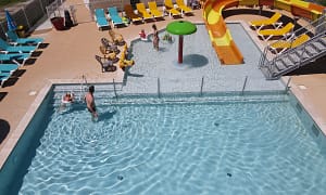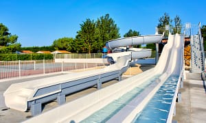 Camping bij , Vendée in Frankrijk. Verwarmd waterpark met glijbaan. Strand op 700 meter. Kidsclub, sporttoernooien, tienerbarbecues en dansavonden. Leef u uit op klimparcoursen.