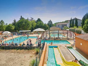 Camping bij Ruoms, Ardèche in Frankrijk. Mooie zwembaden met glijbaan en kinderbad. Schaduwrijke camping. Veel animatie, ook voor tieners, bv mountainbiken. Prachtige omgeving,...