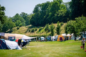 Het terrein is parkachtig aangelegd met fruitbomen en veel groen. De zeer ruime staanplaatsen zijn voorzien van gras en een plateau. Er zijn een boogschietbaan en een ontspanplek...