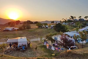 Camping heeft kampeerplekken op terrassen. Fraai uitzicht over de wijnvelden van Meursault. Ook geschikt als doorgangscamping.