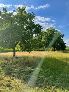 Deze plek is echt voor de liefhebbers van stilte. Je kan er kamperen tussen de notenbomen met uitzicht op bossen en velden. De kampeerplek wordt privé verhuurd, je bent dus...