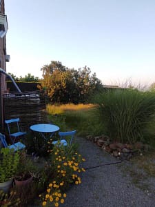 geniet van onze ecologische tuin, tussen de wilde bloemen, met zicht op de velden en een vers aangeplant bos(je), met vogels die de soundtrack verzorgen.... verkwik je s ochtends...