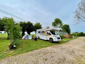 Leuke kampplaats met zicht op de velden. De kipjes en eenden verwelkomen jullie met hun vrolijk getater. Kampvuur mogelijk. We beschikken ook over een kleine cabanne waar gebruik...