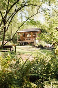 De natuur speelt de hoofdrol in deze onvergetelijke accommodatie. Rond het gezellig open vuur op het middenpleintje staan 3 authentieke houten huisjes op wielen en een...