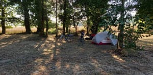 Op ons voedselbos in wording (van 1 ha) is een rustige plek waar je je tent op kunt zetten. We hebben een composttoilet voor onze gasten en een buitenkraan. Je mag een emmer...