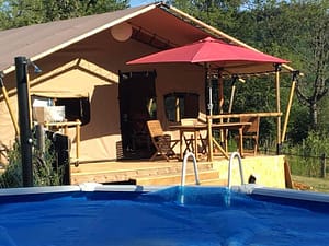 Ingerichte safaritent op landgoed Auberge du Precontent Frankrijk Zoekt u ruimte, rust, natuur en een zwembad, dan bent u bij ons aan het juiste adres. Geniet in de vrije natuur...