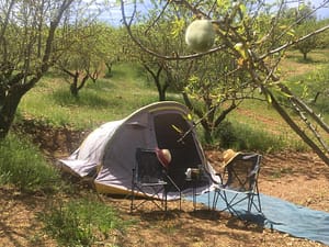 AN alhama de granada Overnachten in de tuin van Casilla de los Tajos, amandelboomgaard in Z-Spanje