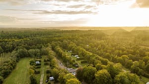 De camping met een heuvelachtig terrein ligt in het bos. Door het glooiende terrein, de bomen en struiken bieden de staanplaatsen voldoende privacy. De manege met paarden biedt de...