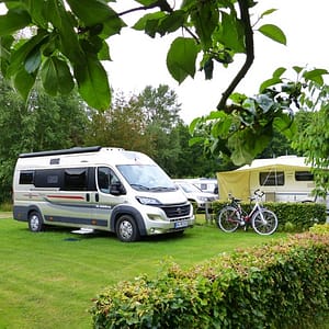 Langgerekte vlakke camping aan een eigen meertje met een ligweide. De afgebakende staanplaatsen zijn gescheiden van de vaste plaatsen. Voor kampeerders met een hond is een apart...