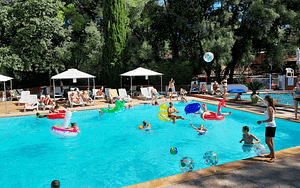 Op deze camping liggen de toeristische staanplaatsen aan paden en zijn gescheiden door lage heggen. Het grote, verwarmde zwembadencomplex, met veel bloemen en struiken, heeft...