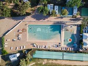 Camping met twee delen, met elkaar verbonden door een voor auto's toegankelijke tunnel. De staanplaatsen zijn op terrassen of op glooiende weiden. Er zijn diverse zwembaden en...