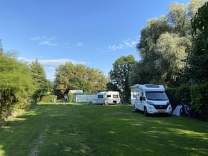 Vierkant, licht glooiend terrein in een landelijke omgeving. De door heggen en bomen omzoomde staanplaatsen hebben voldoende schaduw en bevinden zich op meerdere niveaus. Er zijn...