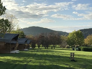 Het terrein ligt op een heuvel en grenst aan het natuurpark Pilat. Er is natuurlijke begroeiing. De staanplaatsen liggen onder eiken, in nissen en op terrassen, deels gescheiden...