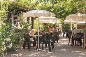 Aan de Cèze gelegen, parkachtige terrassencamping. De plaatsen liggen veelal aan geasfalteerde paden op intieme, in het bos uitgespaarde plekjes. Schaduw en privacy is geregeld....