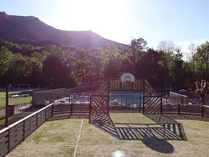 De parkachtige camping grenst aan een bos- en wandelgebied. Campinggasten mogen gebruikmaken van de gemeentelijke sportvelden tegenover het terrein (multisport- en volleybalveld)....