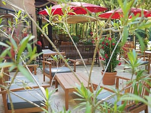 De camping is gelegen tegen een helling met terrassen. De kampeerders kunnen vanuit deze terrassen genieten van een fraai uitzicht of zij kunnen kiezen voor een lager gelegen plek...