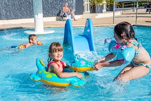 De camping ligt in een pijnbomenbos van 10 ha. In het zwemcomplex is een overdekt zwembad, een openluchtzwembad, waterglijbanen en een spa met jacuzzi, sauna en hamam. Voor de...
