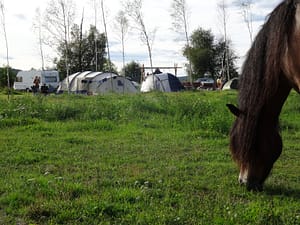 De camping heeft ruime staanplaatsen en ligt aan de waterkant met uitzicht op weides, bossen en de rivier. Er wandelen regelmatig herten, vossen, kraanvogels en zelfs elanden door...