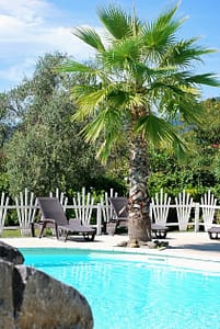 De korte zijde van het langgerekte terrein grenst aan het Lago di Bracciano. Hoge loofbomen zorgen grotendeels voor beschutting. Het restaurant grenst aan het lagune zwembad....