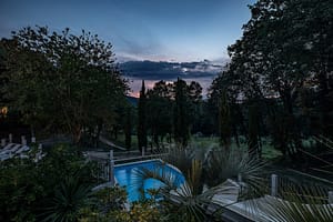 Parkachtig aangelegde camping op een vlak terrein aan de rivier de Cèze. Vanaf veel staanplaatsen is uitzicht op de omringende heuvels. De door heggen omheinde staanplaatsen...