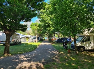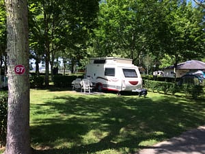Rustig, tegen een helling gelegen camping. De ruime toeristische staanplaatsen vind je aan het begin van de camping en worden omzoomd door hagen, die privacy geven. Verspreid...