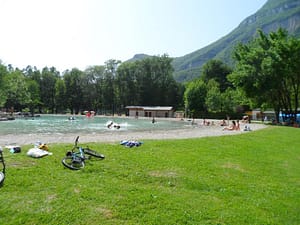 De langgerekte terrasvormige camping heeft uitzicht op het Lac du Lit du Roi en de bergen daarachter. De plaatsen zijn afgebakend door heggen, een deel ligt aan het meer. Er is...