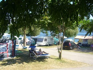 De camping ligt in een groene omgeving. De vlakke staanplaatsen voor caravans en campers bevinden zich langs een slingerende hoofdweg. De tentplaatsen liggen op een apart gedeelte...