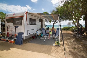 Deze terrassencamping, in een bos met pijn-, olijf- en eucalyptusbomen, kent aanzienlijke hoogteverschillen. Indien nodig wordt tractorhulp aangeboden. De vlakke standplaatsen...