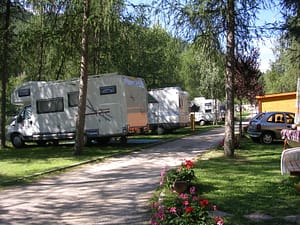 Camping op 1000 m hoogte in een naaldbos, in het hart van de Dolomieten, met zicht op een kasteel. De camping wordt doorsneden door een zeer snelstromende, forse rivier. Op beide...