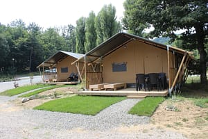 Op dit met pijnbomen begroeide, op een steile heuvel gelegen bungalowpark zijn ook een aantal toeristische staanplaatsen. Soms gegroepeerd, soms tussen de bungalows. Op het...