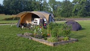 De camping heeft door zijn vormgeving ruime staanplaatsen. Deze bevinden zich langs de rand van een open veld, maar bieden toch voldoende privacy. De kikkerpoel en het bruggetje...