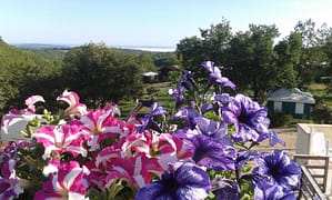 Dit licht hellende, deels terrasvormige terrein op een heuvel is begroeid met middelhoge en hoge loof- en naaldbomen. Er is een weids uitzicht, maar niet vanaf de kampeerplaatsen....