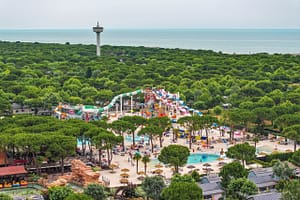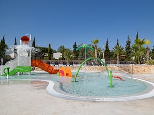 De camping heeft de uitstraling van een tropische tuin. Veel verschillende soorten bomen waaronder palmen en bloeiende struiken omringen de speels gelegen staanplaatsen, die deels...