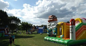 De op 3 km van het strand gelegen familiecamping met flinke hoogteverschillen heeft een kleurrijke entree met roze oleanders en blauwe bloemen. In het centrum vind je de tenten...