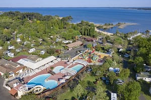 Tegenover de entree van deze familiecamping ligt een zandstrand met zeilschool aan het Lac de Sanguinet. De zeilschool verhuurt planken en boten. Strandplezier en watersport, daar...