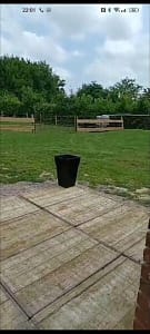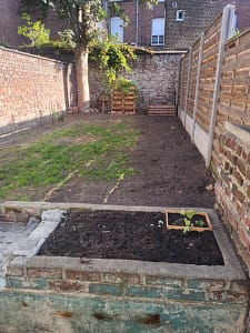 Wij beschikken over een perceel van 1600m2 waarop ons huis is gebouwd. Dit perceel laat ons een beschikbare oppervlakte van 300m2 over, waarop we twee percelen van 150m2 hebben....