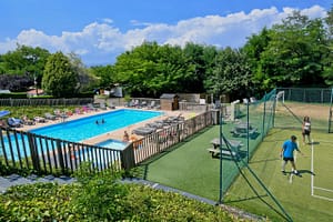 Grote familiecamping met 3 mooie zwembaden waarvan één met whirlpool. Je rijdt er binnen door de poort van een 14e-eeuws klooster. Mooie schaduwrijke staanplaatsen, je loopt zo...