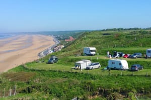 Grote, aan zee (200m) gelegen camping op de plaats van de landing door de Amerikaanse troepen op 6 juni 1944. Afgebakende plaatsen met stroom maar zonder schaduw. Overdekt zwembad...