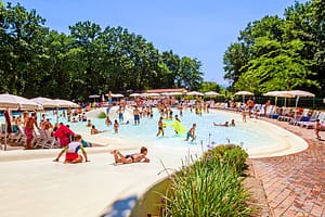 Op het domein liggen drie meertjes waarvan één met een grote waterglijbaan. In het hoogseizoen kan men 's nachts zwemmen met onderwaterverlichting in een zwemlagune van 5000m²....