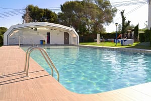 Vernieuwde camping met verschillende voorzieningen (o.a. multi-sportvelden, zwembad), op enkele kilometers van de zee gelegen.