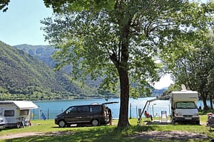 Direct aan het meer ligt deze terrassencamping. Uitstekend geschikt voor watersporters, zeker voor windsurfers. Restaurant met mooi zwembad.