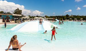 Camping bij Saint-Jean-de-Monts, Vendée in Frankrijk. Verwarmd buitenbad, glijbaan. Groot, ondiep kinderbad. Slechts 200 meter van zee. Bezoek het eiland Noirmoutier.
